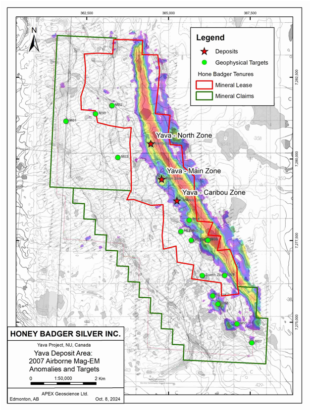 White Rock, British Columbia, October 28, 2024 – Honey Badger Silver Inc. (TSXV:TUF | OTCQB:HBEIF) (“Honey Badger” or the “Company”) is pleased to announce that it has added, by low cost staking, additional claims at its 100%-owned Yava silver project, located in Nunavut. The objective was to increase its strategic ownership of promising silver-rich geologic targets in the immediate area of the original Yava claims.