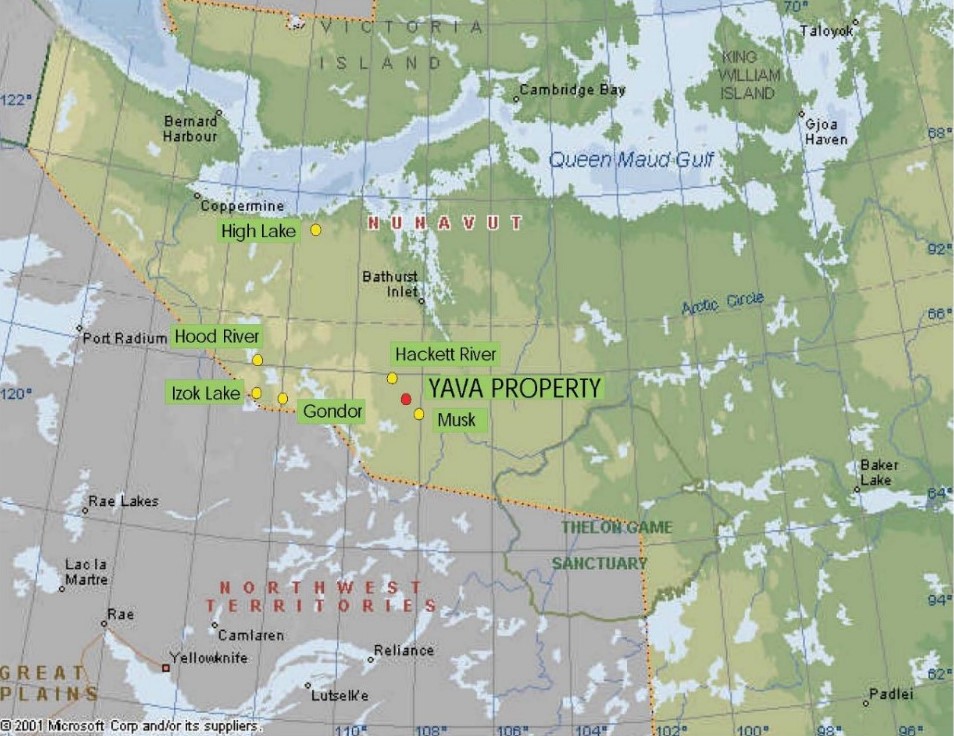 The Yava Property is in the Mackenzie Mining District, in the Territory of Nunavut, approximately 450 kilometers northeast of Yellowknife.